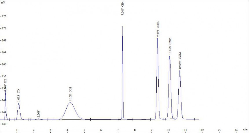 电力变压器油中七组份分析谱图: